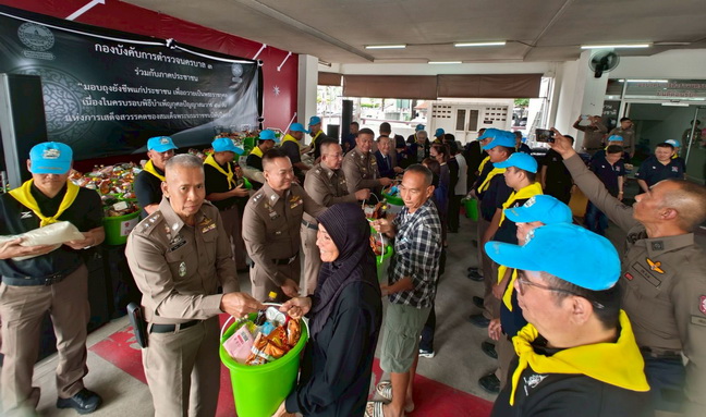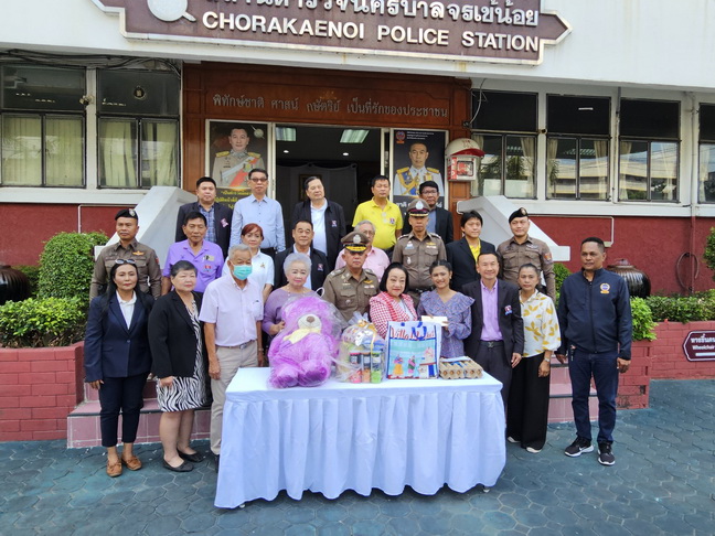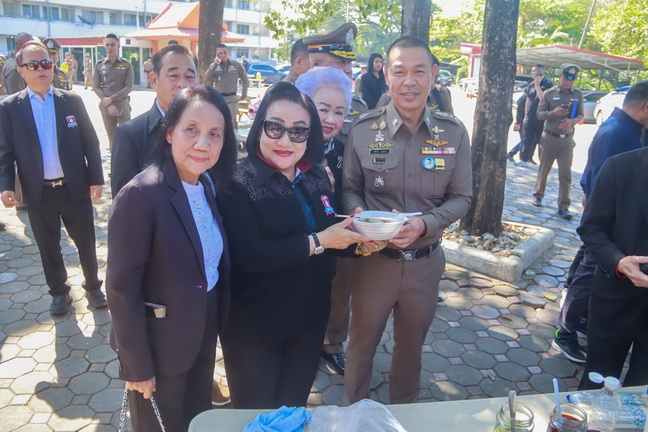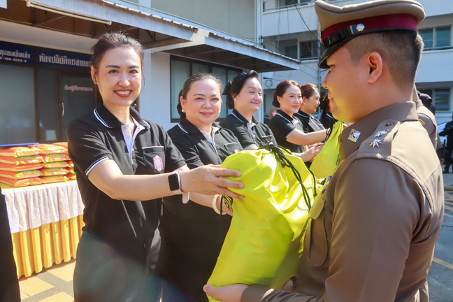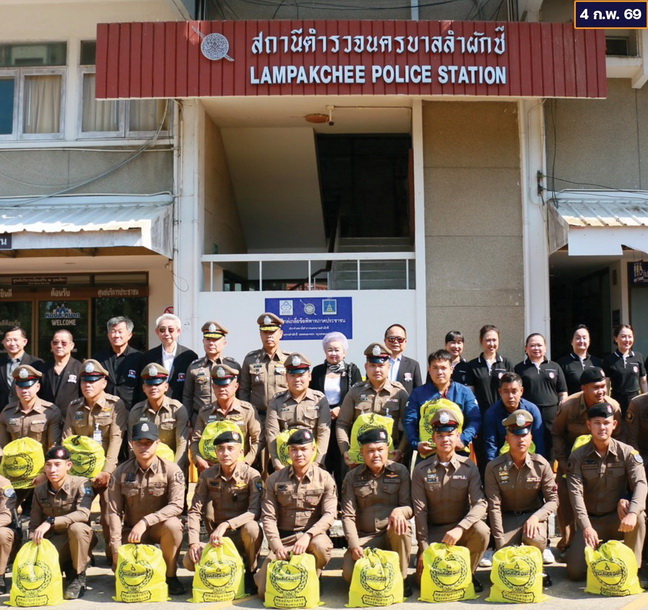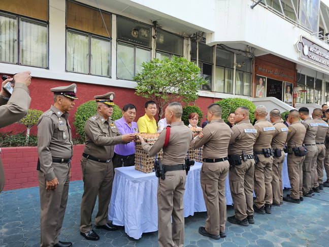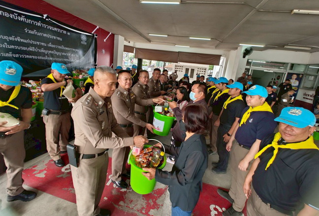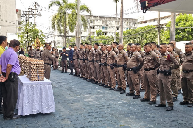 ได้ร่วมกันแจกไข่ไก่ให้แก่เจ้าหน้าที่ตำรวจ สน.จรเข้น้อย เพื่อเป็นขวัญและกำลังใจจากนั้น