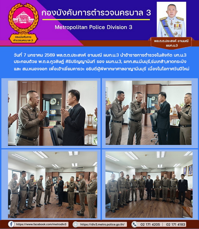 เมื่อวันที่ 5 มีนาคม 2569 เวลา 10.00 น. พล.ต.ต.ประสงค์ อานมณี ผบก.น.3 พร้อมด้วย