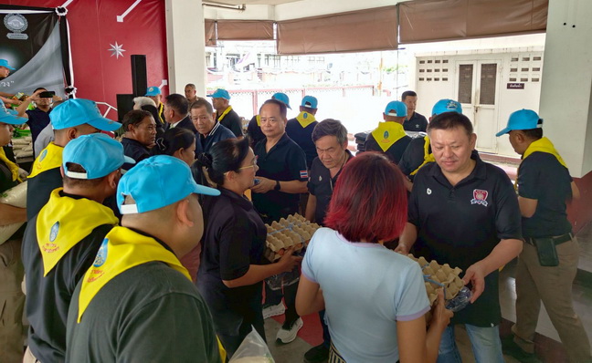 ได้เดินทางเข้าชุุมชนเพื่อแจกถุงยังชีพสิ่งของจำเป็นพร้อมทุนเลี้ยงชีพให้แก่